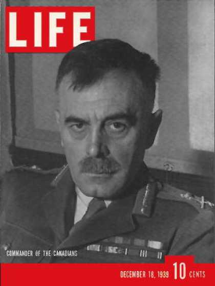 By the way, we discovered also last night that General McNaughton, inventor of the cathode ray radar scope, the rights to which he sold the Canadian government for but a dollar, had made the cover of Life on the issue dated December 18, 1939. So, for your edification, here a facsimile image of that, reduced, of course, from its original size, which was quite a bit larger: