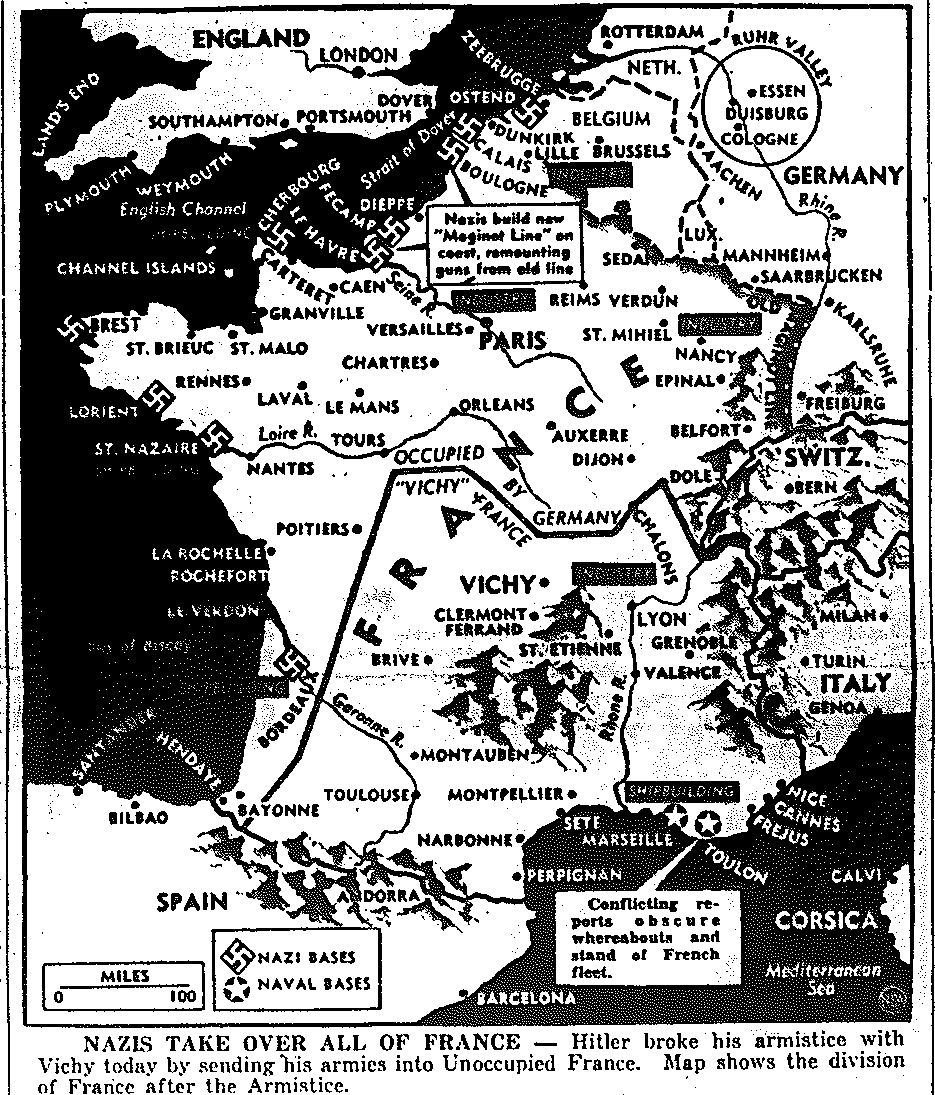 Map of Nazi Occupation of Unoccupied France, published November 11, 1942
