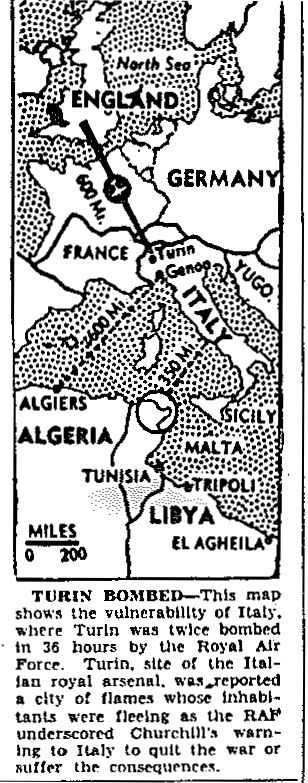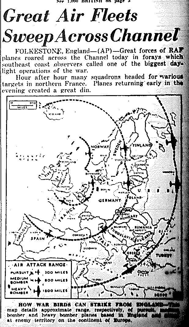 Map of Scope of RAF Bombing Raids, published June 2, 1942