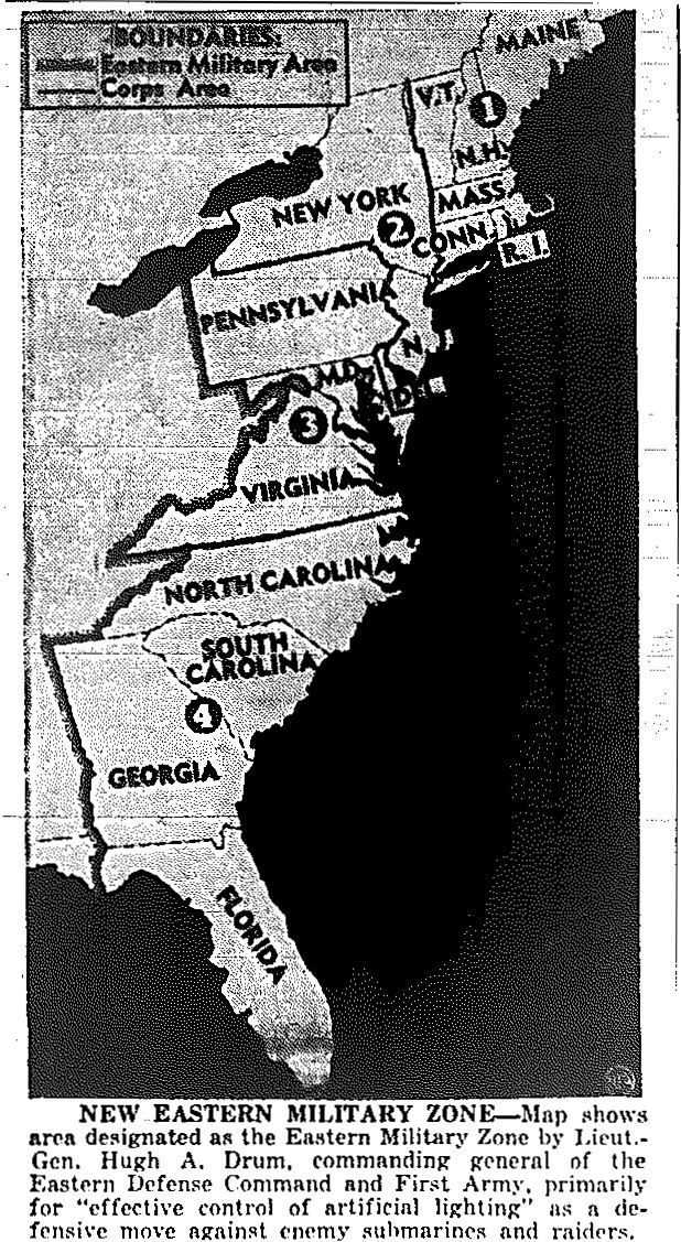 Map of Eastern U.S. Military Zone, published May 18, 1942