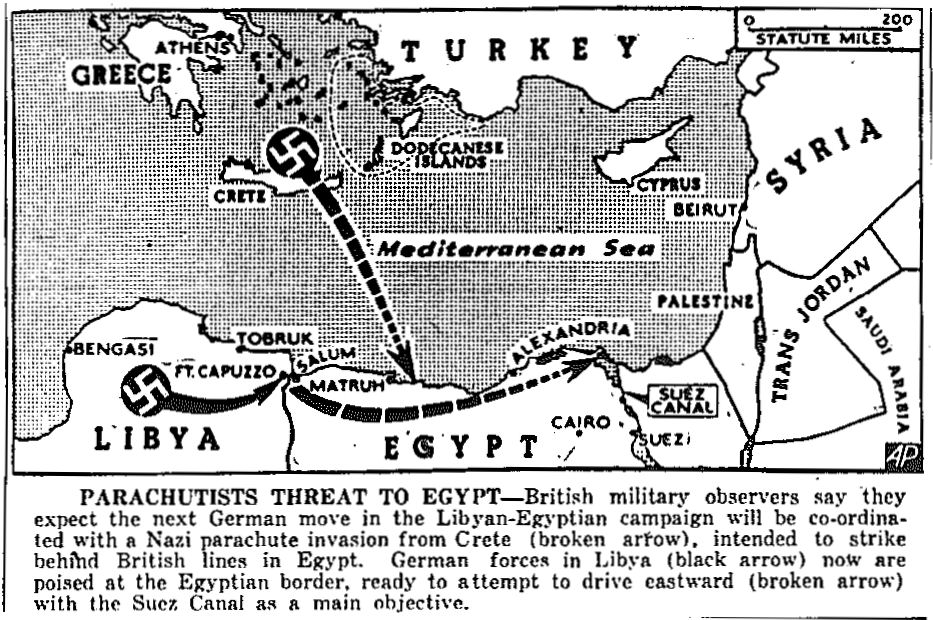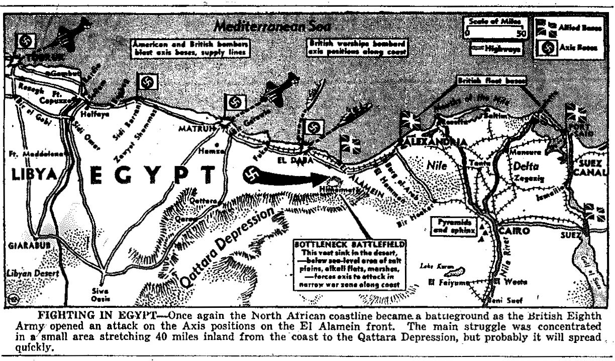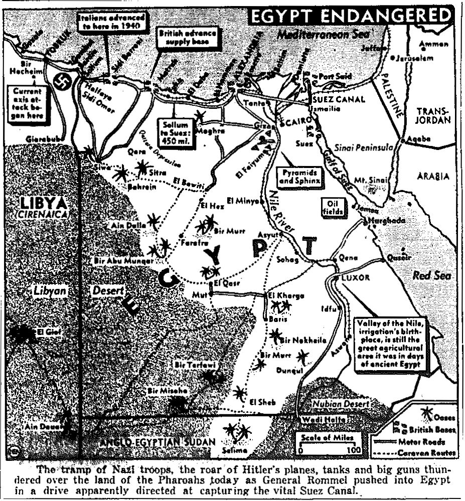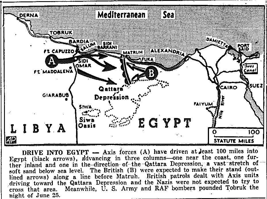 Map of Egypt Showing Line at Matruh, published June 27, 1942