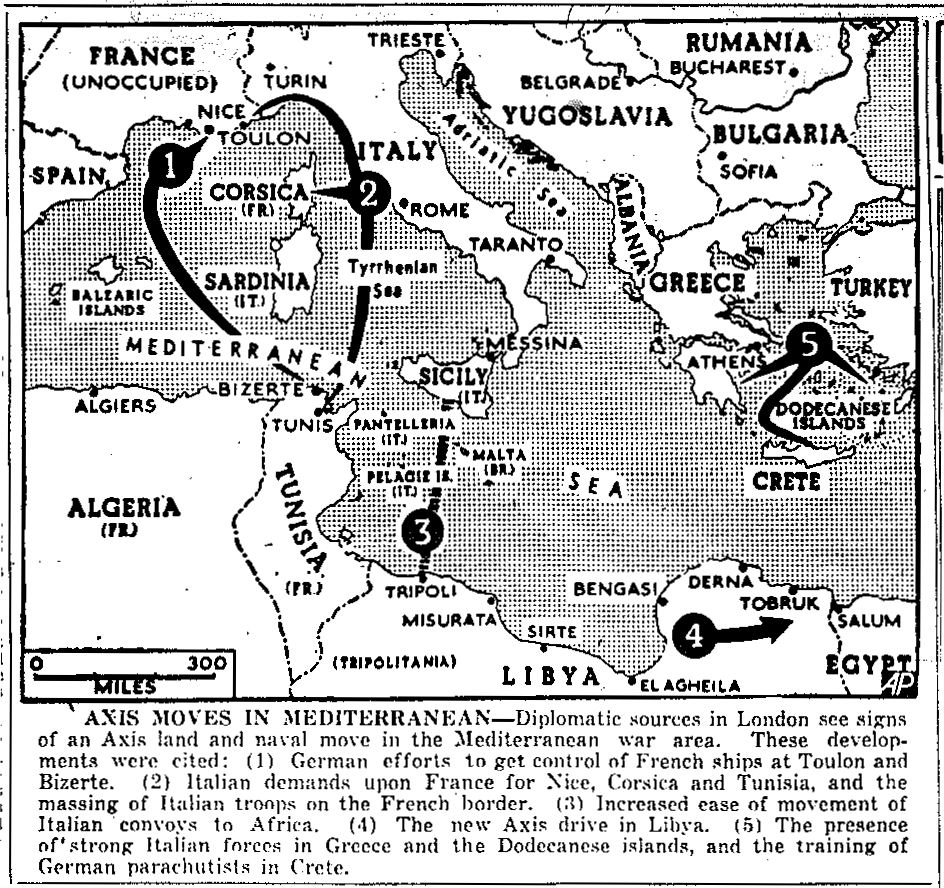The Charlotte News-- Maps of North Africa, Mediterranean Published in 1942
