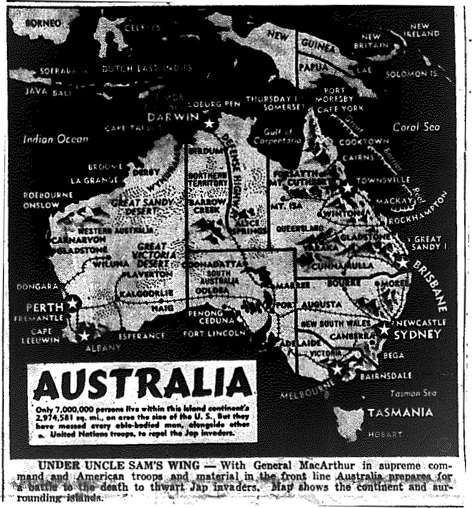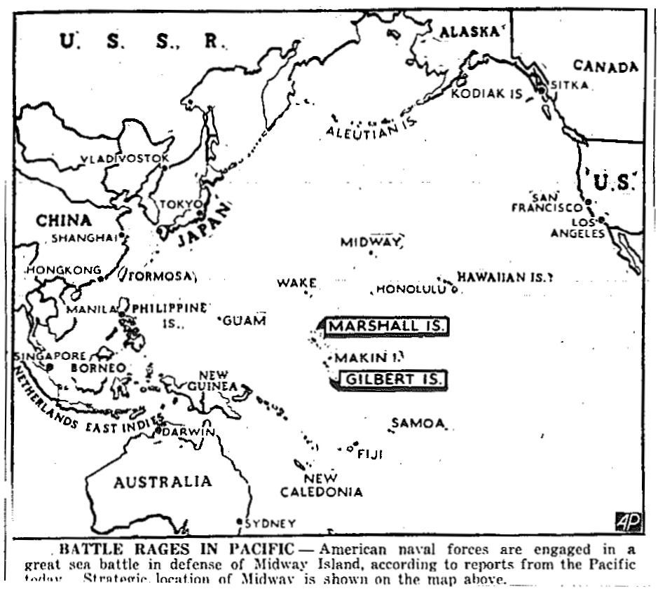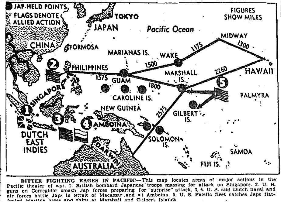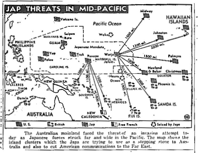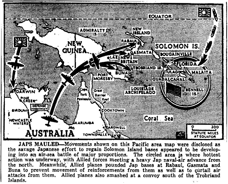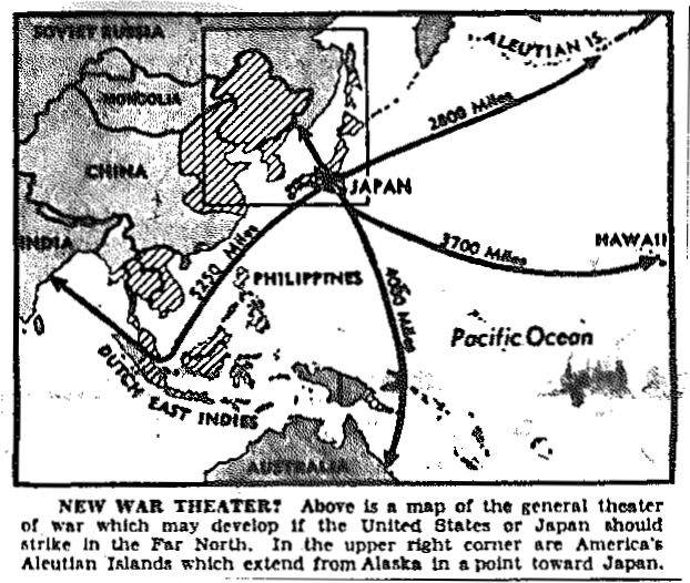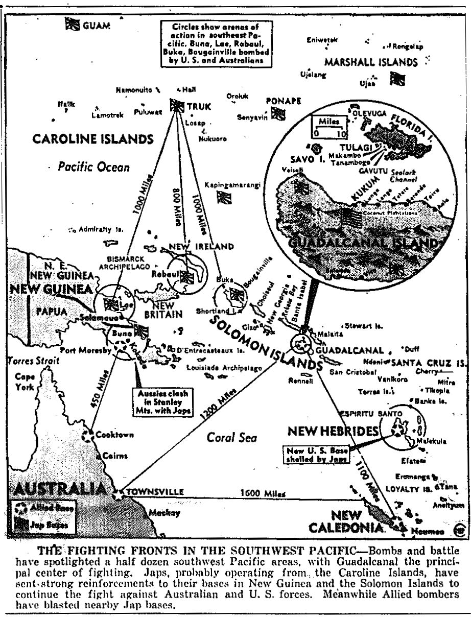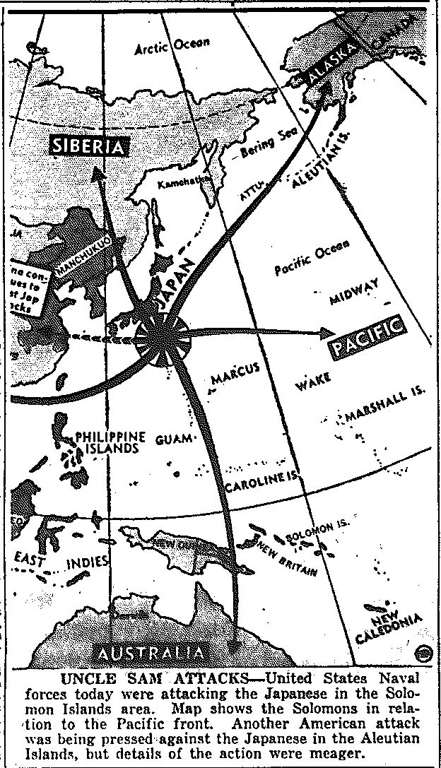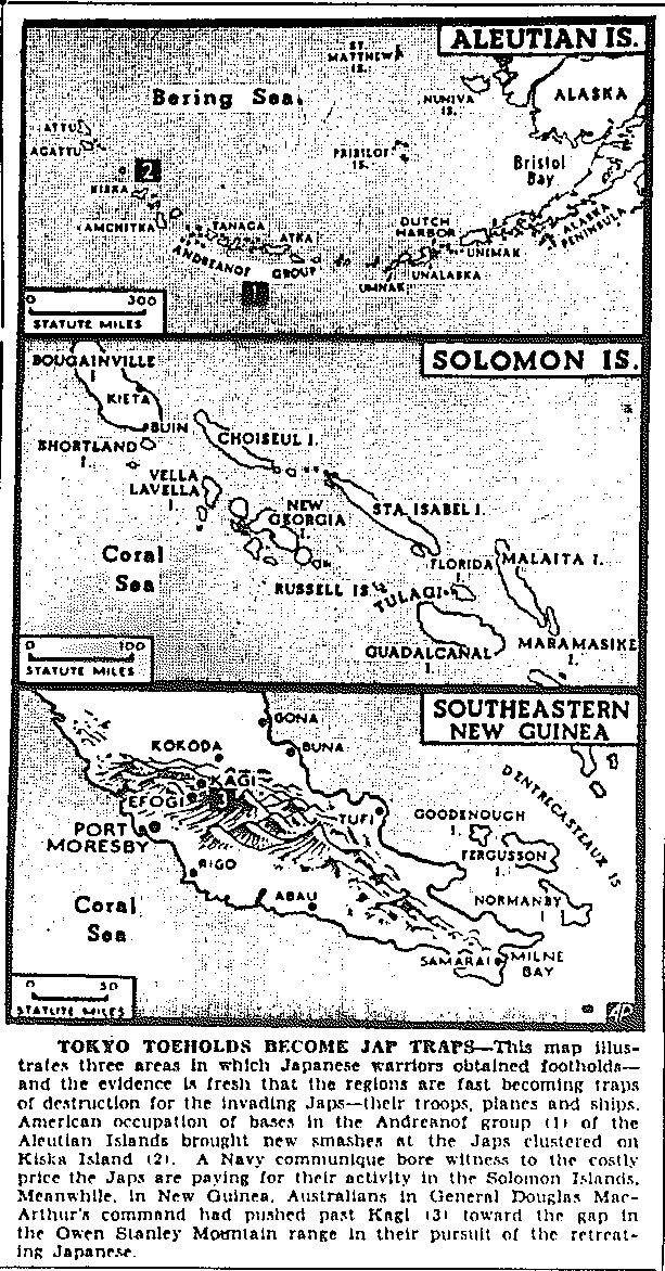 Map of Aleutians, New Guinea, Solomons, published October 7, 1942