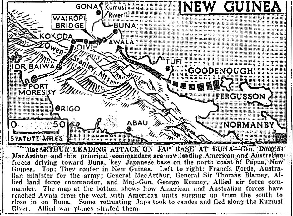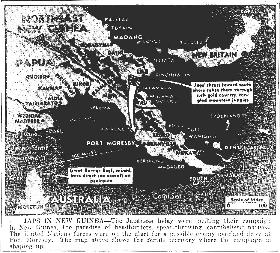 Map of New Guinea, Papuan Peninsula, published May 4, 1942