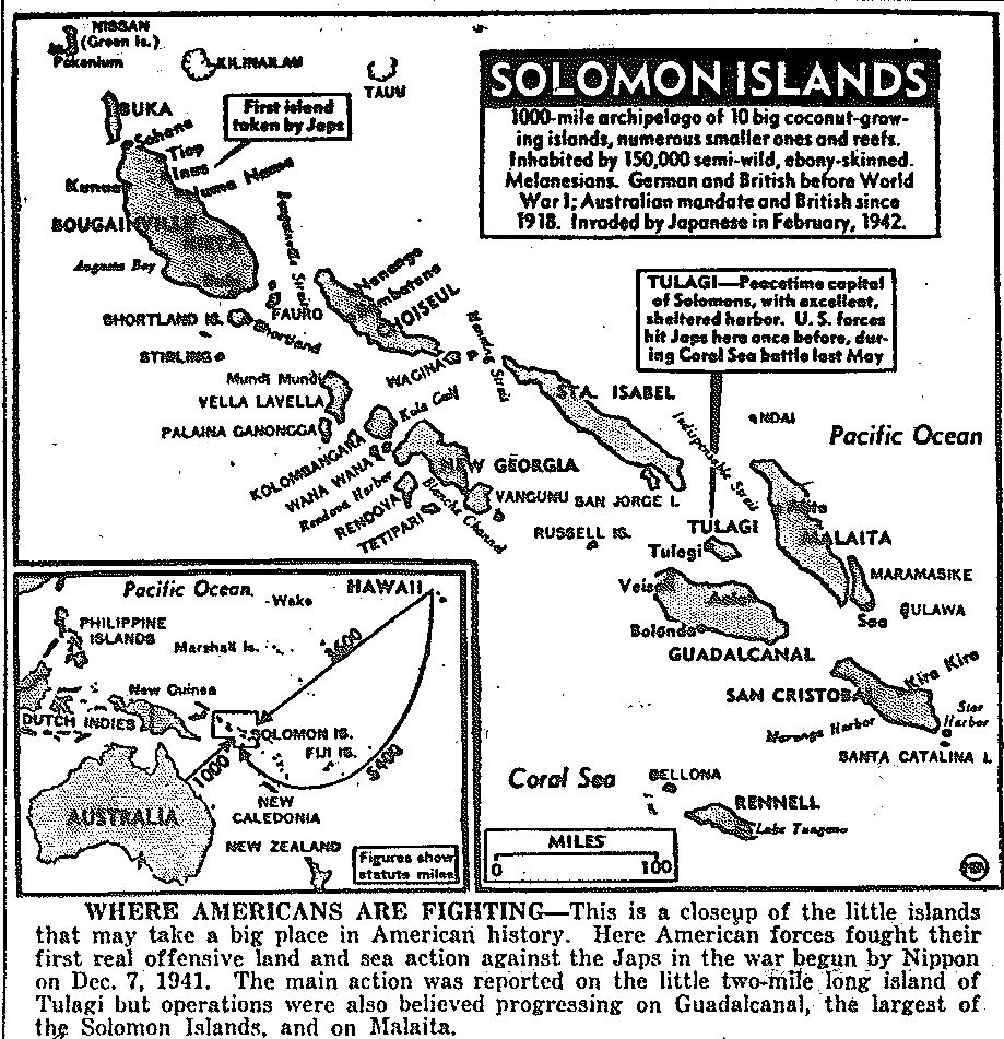 Map of Solomons, Guadalcanal, published August 13, 1942