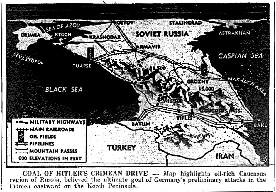 Map of Caucaus Oil Wells, published May 14, 1942