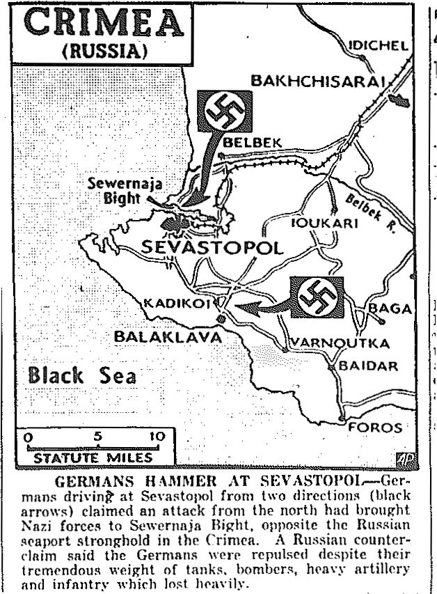 Map of Crimea, Sevastopol published June 20, 1942