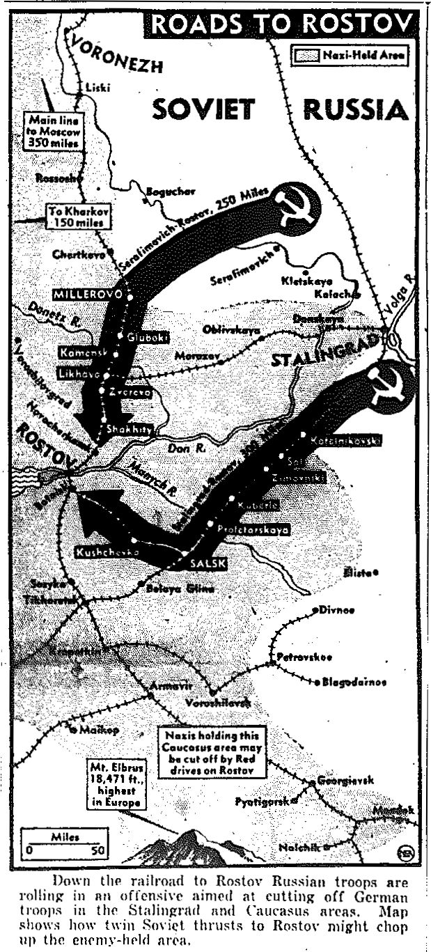 Map of Stalingrad-Rostov Roads, published December 25, 1942
