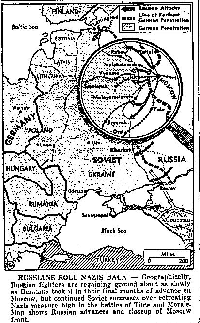 Map of Russia--Moscow, Rzhev, Smolensk, Bryansk, published January 10, 1942
