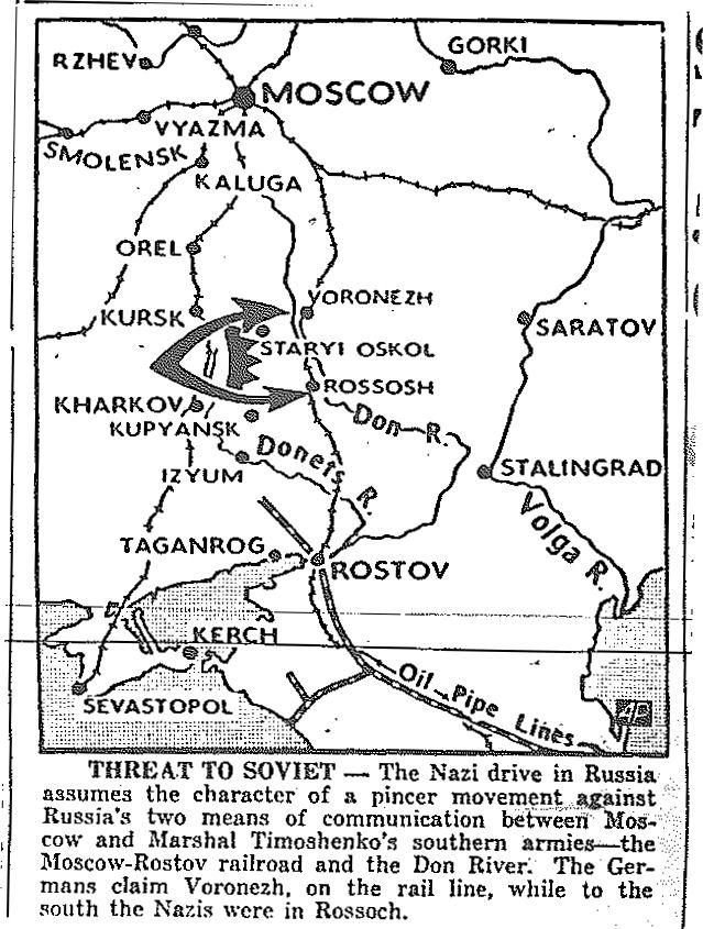 Map of Russia--Rostov, Stalingrad, published July 29, 1942