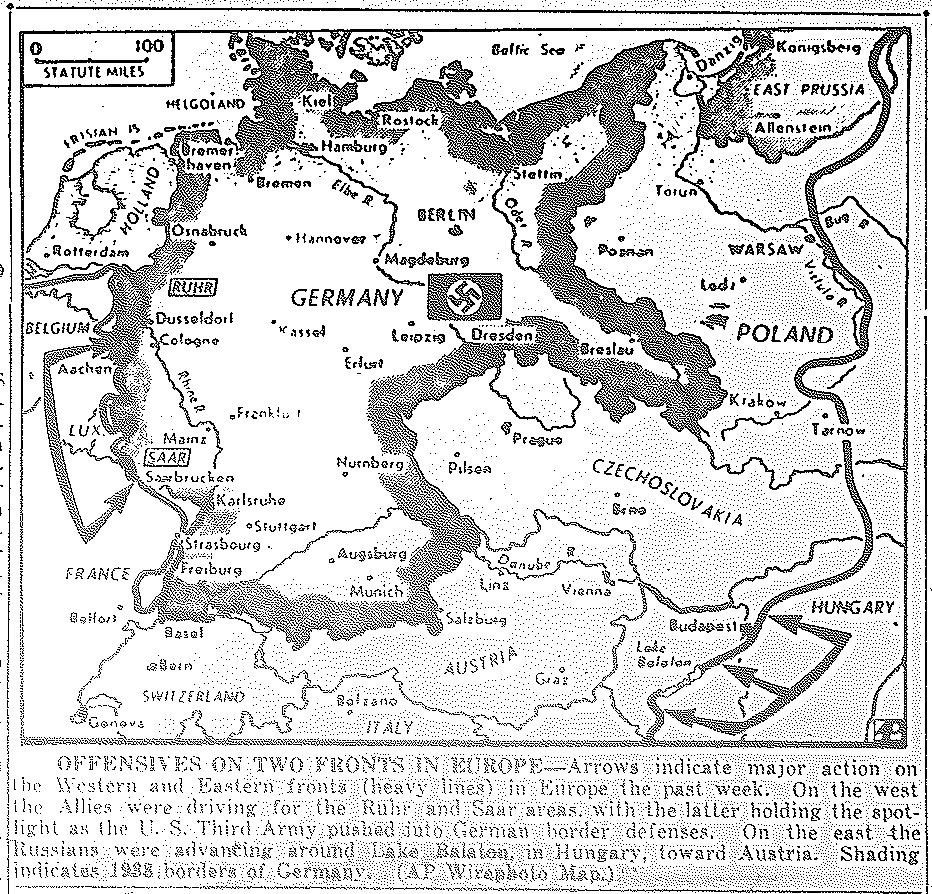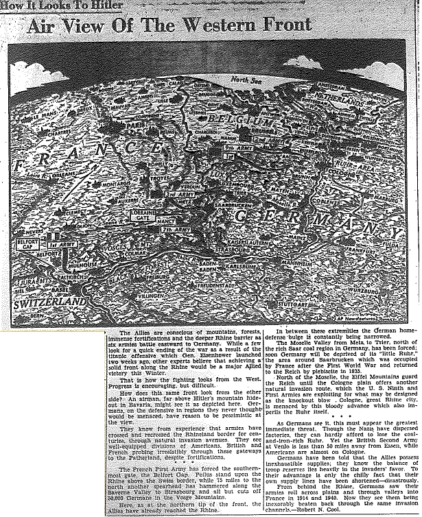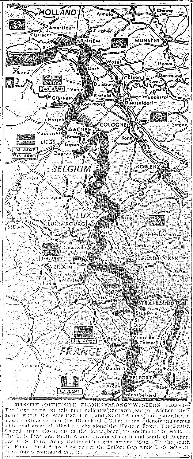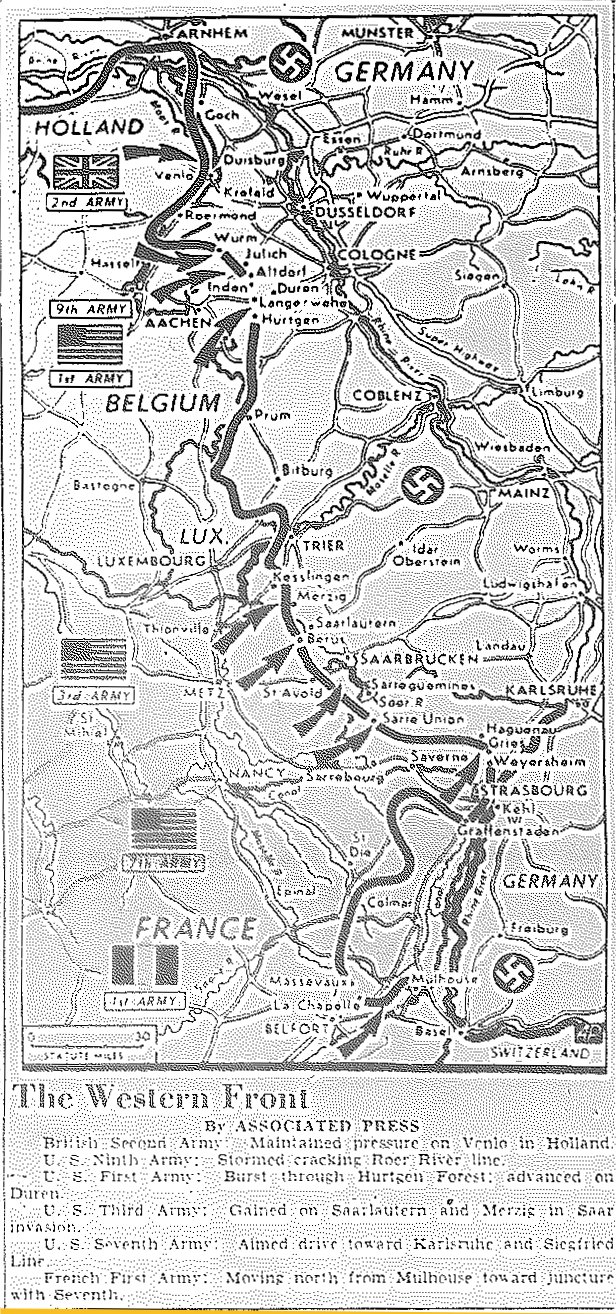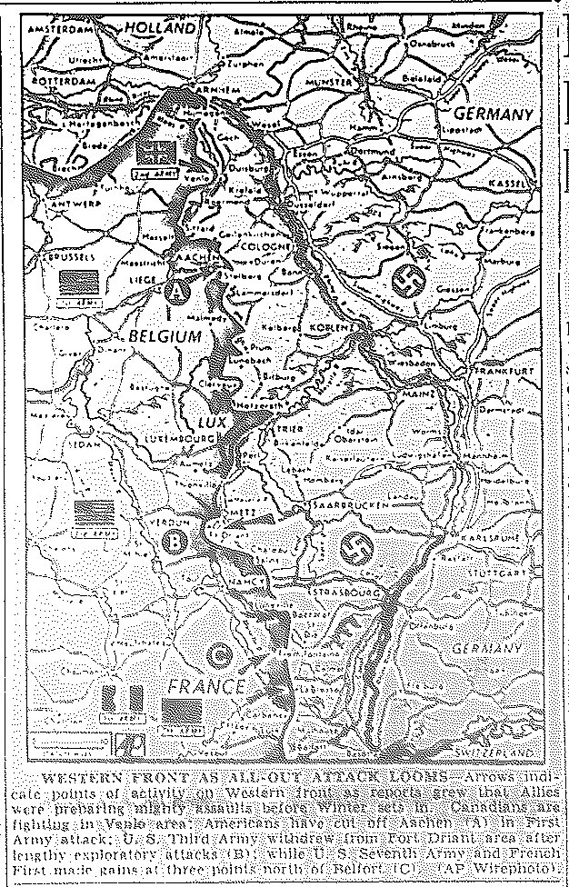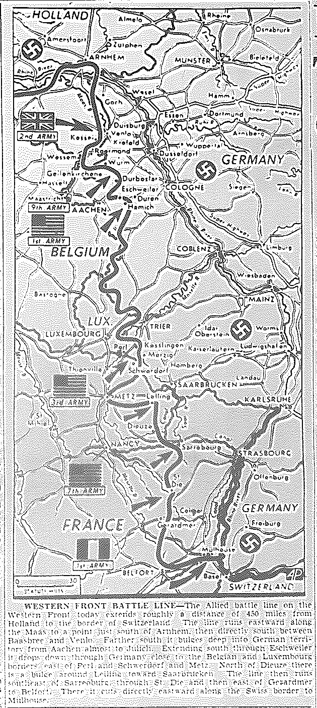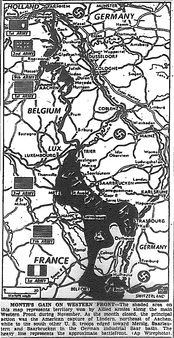 Map of 450-mile Western Front, from Holland to Switzerland, published November 22, 1944
