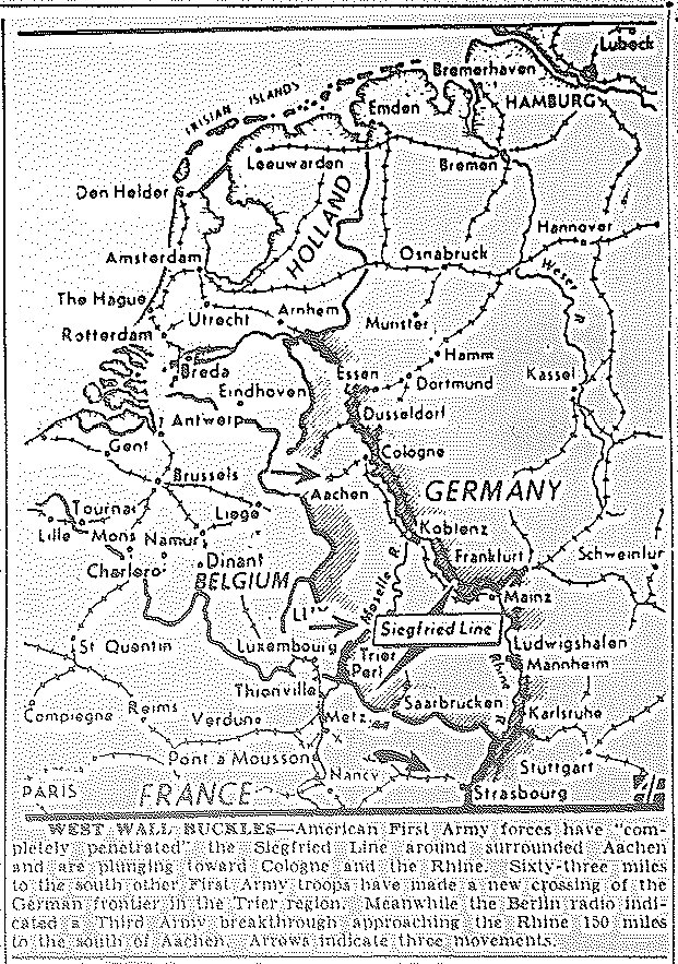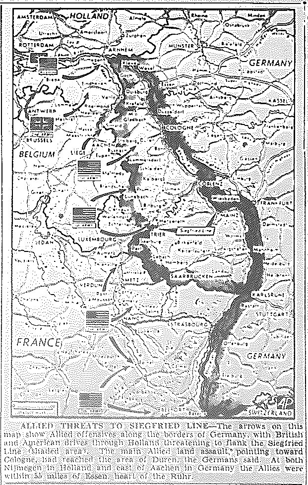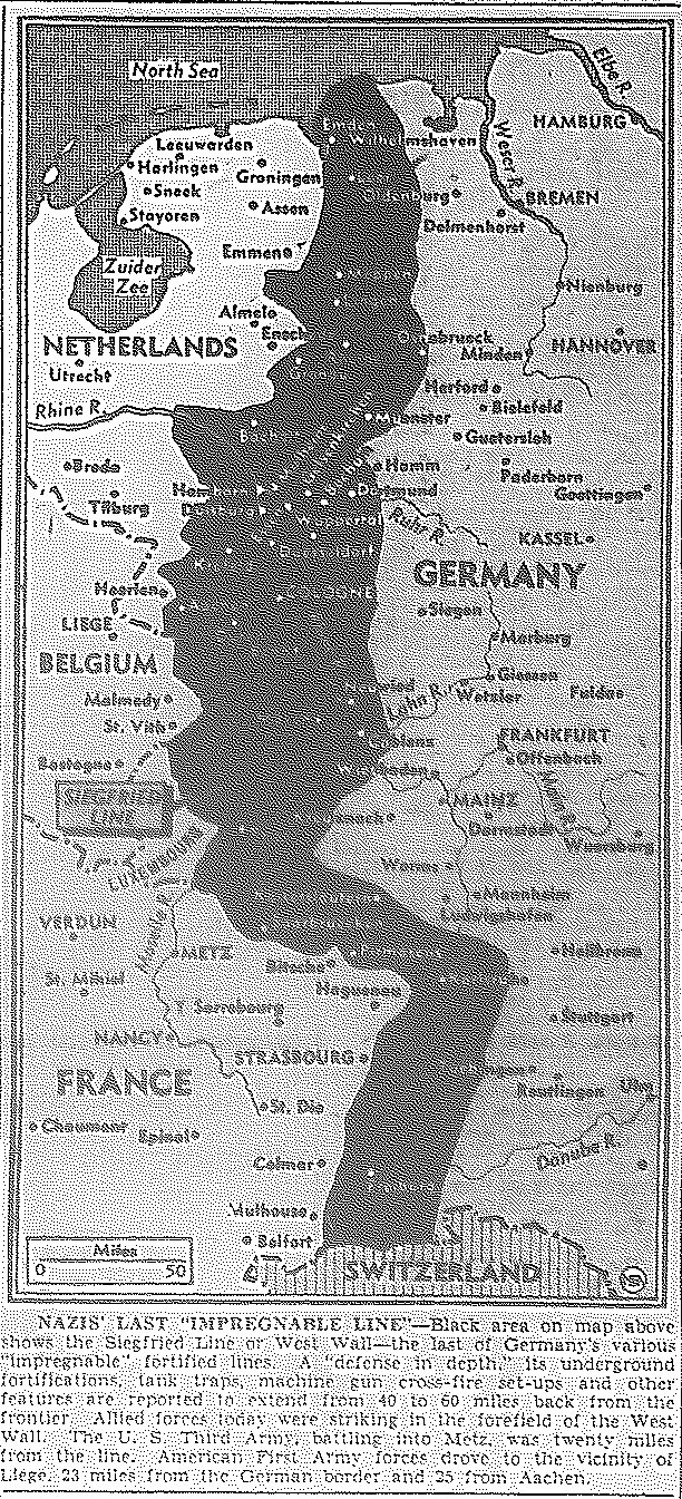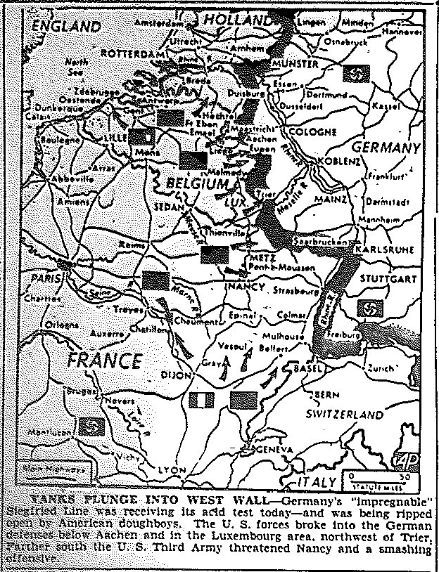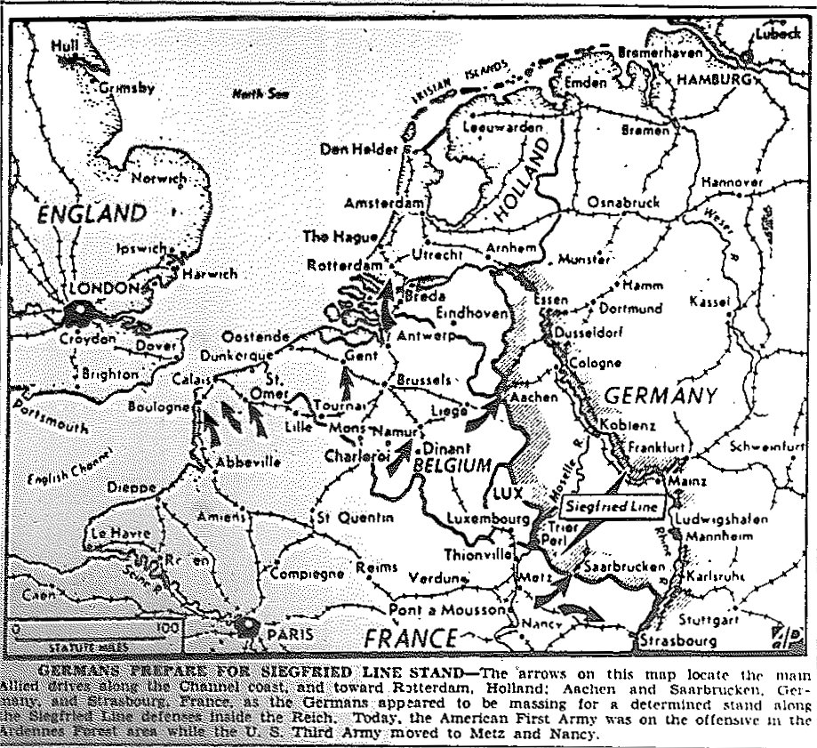 Map of Allied Smash against Siegfried Line, published September 14, 1944