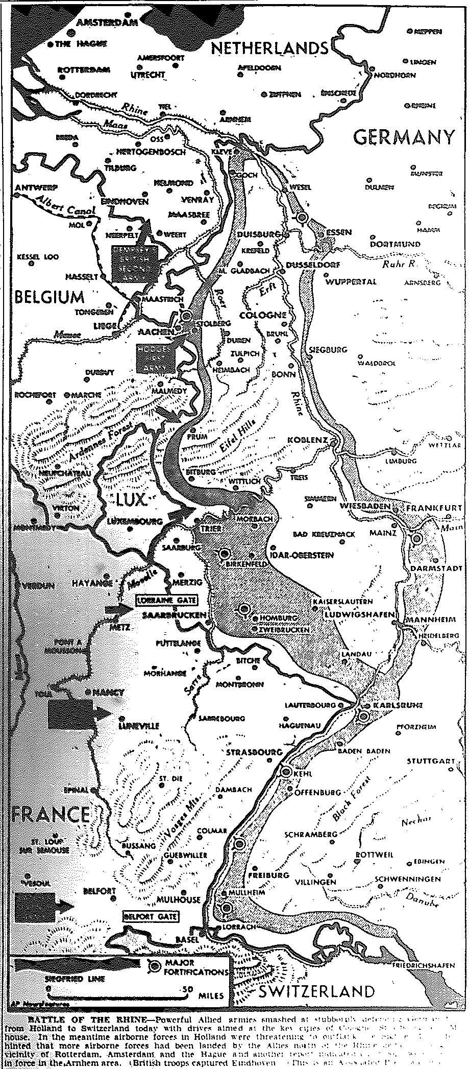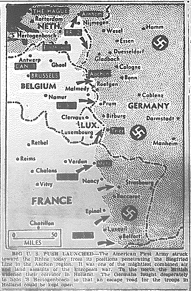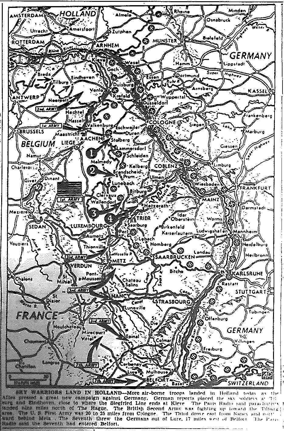 Map of Allied Smash against Siegfried Line, published September 14, 1944