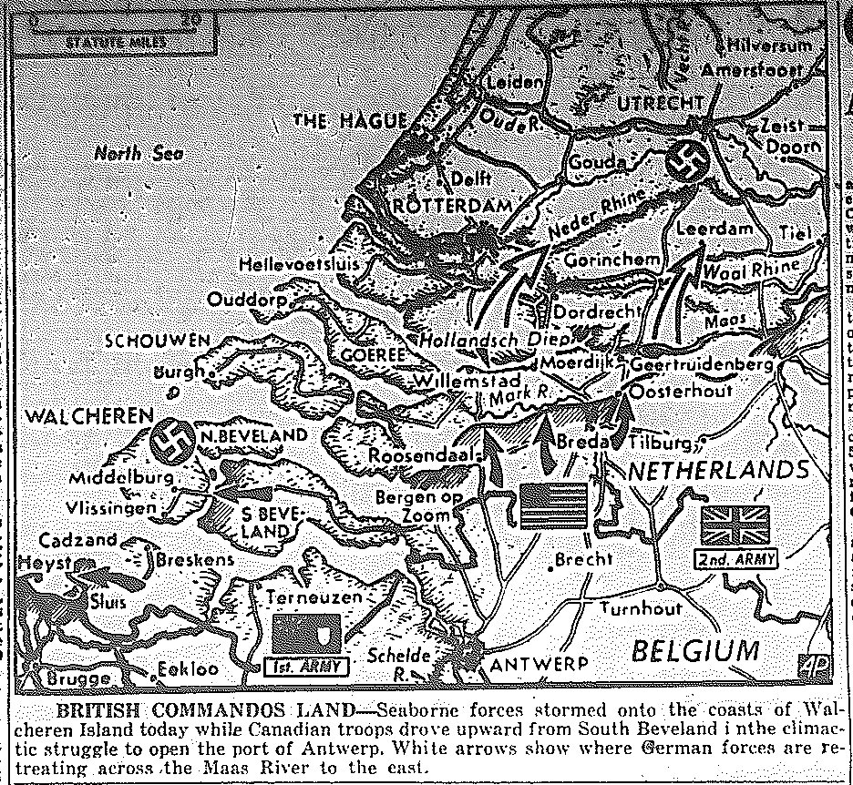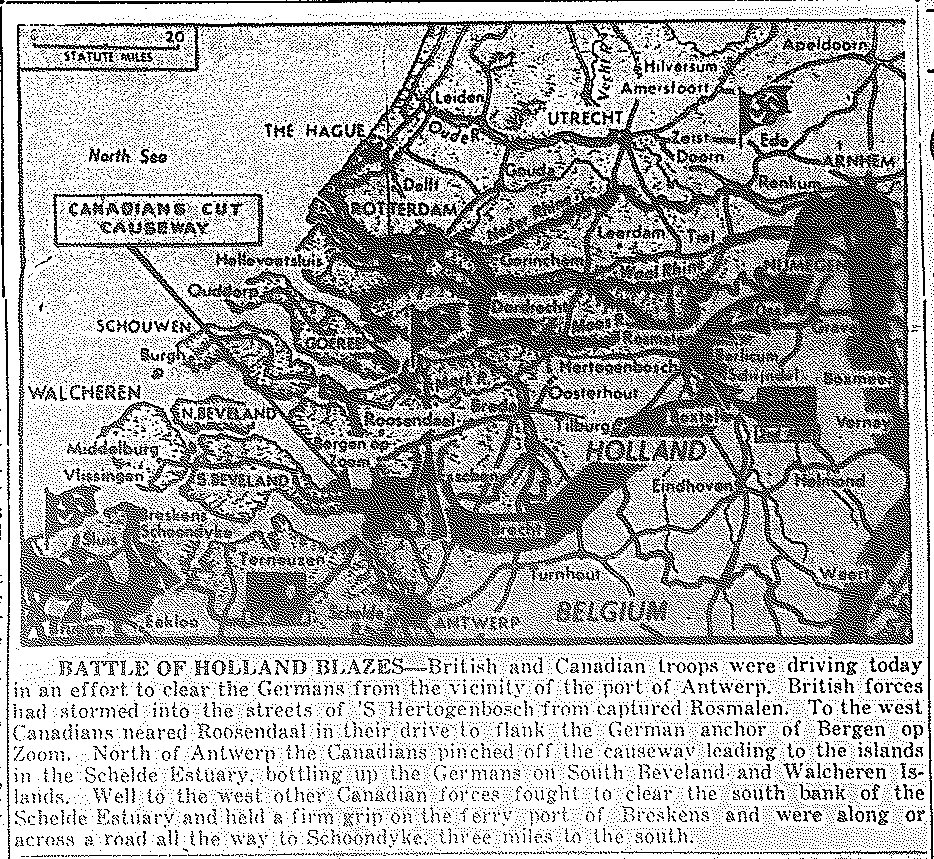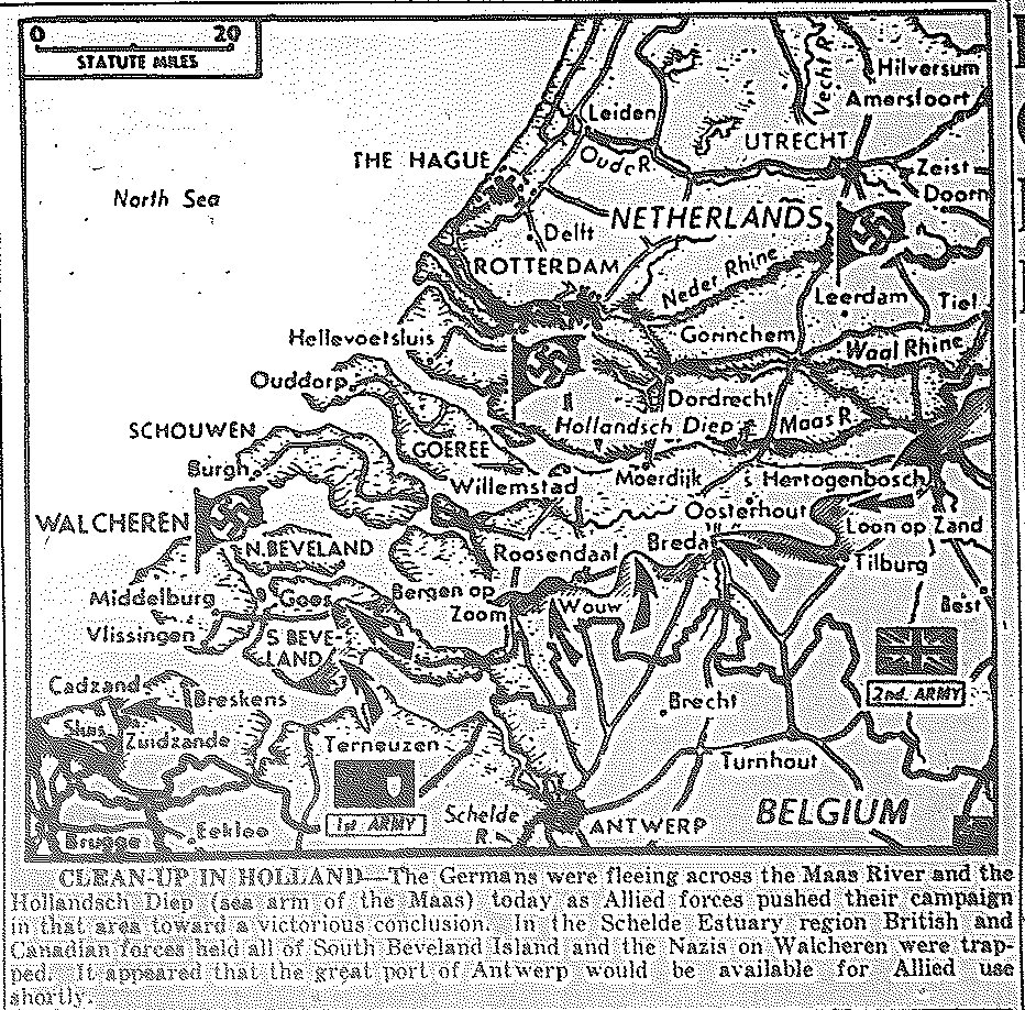 Map of Clean-up of Holland by British and Canadians, Fall of Antwerp Imminent, published October 31, 1944