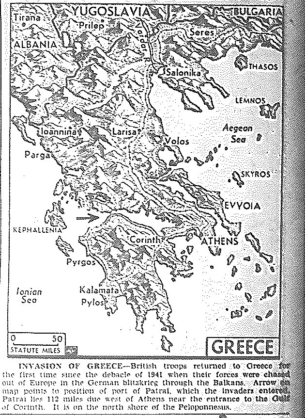 Map of British Invasion of Greece at Patrai, published October 5, 1944
