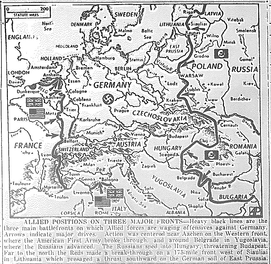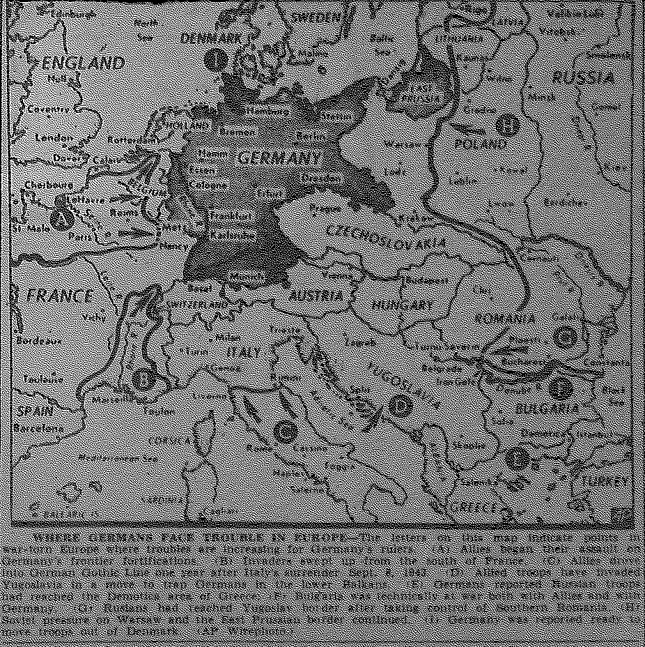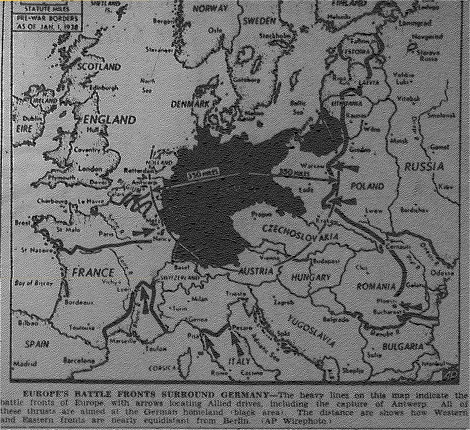 Map of War Fronts Encompassing Germany, published September 5, 1944