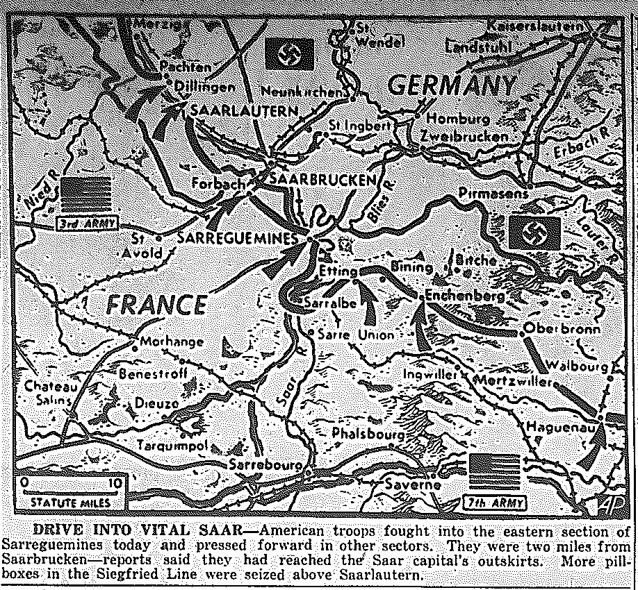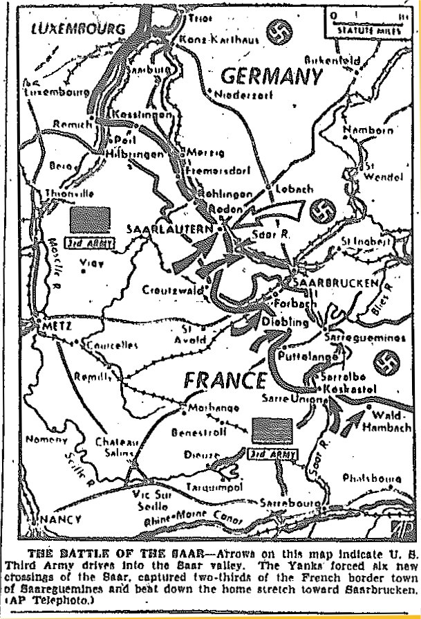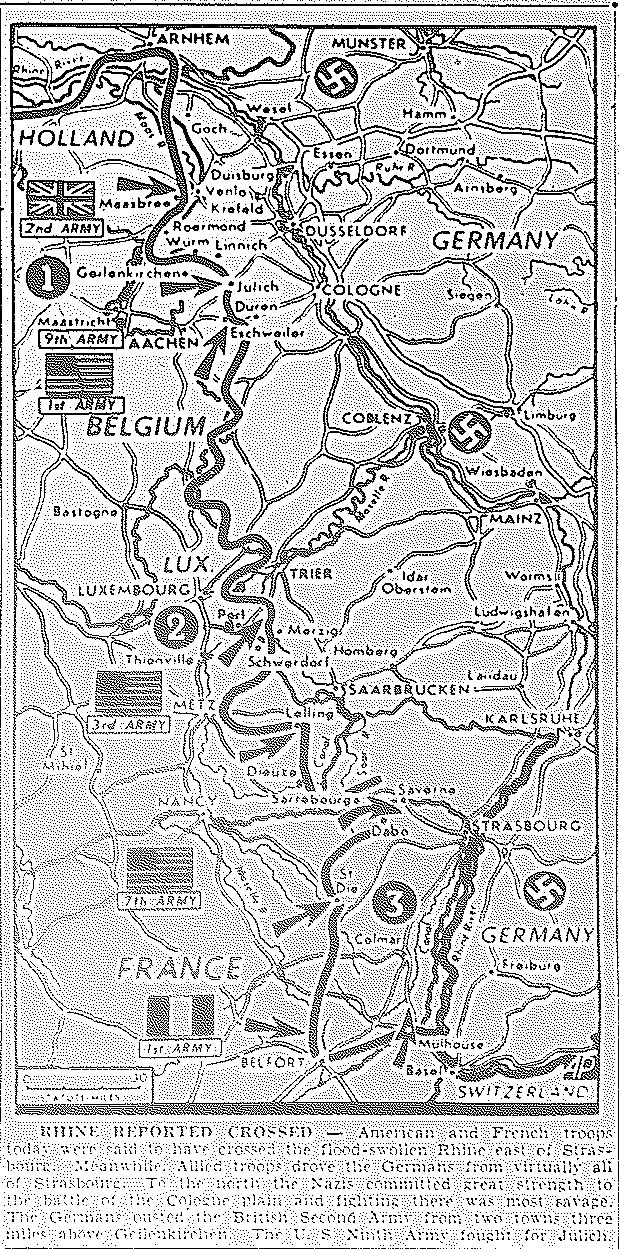 U.S. 7th Army Pursuing Germans North of Saarebourg, French Cross Rhine North of