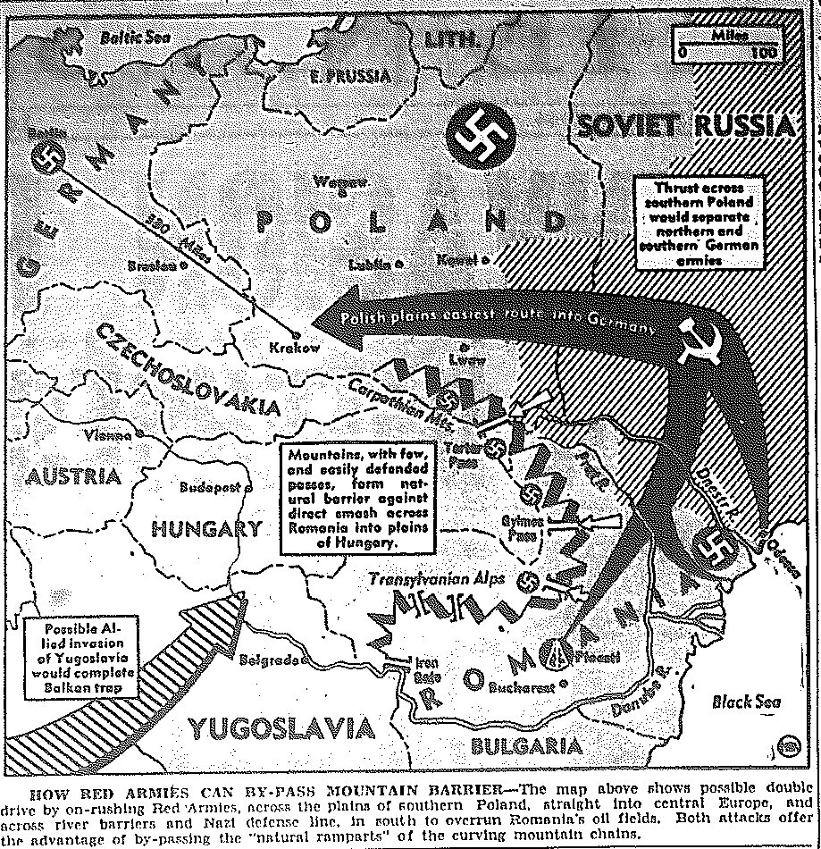Map of Path of Potential Russian Entry to Eastern Europe, published April 19, 1944
