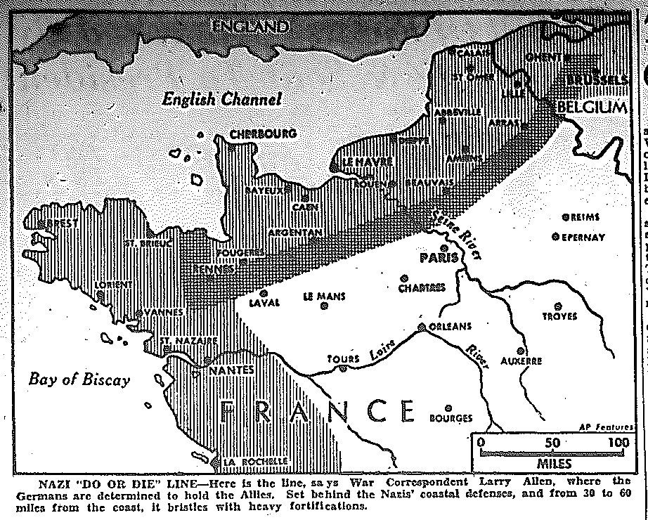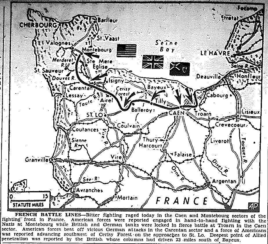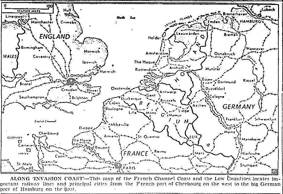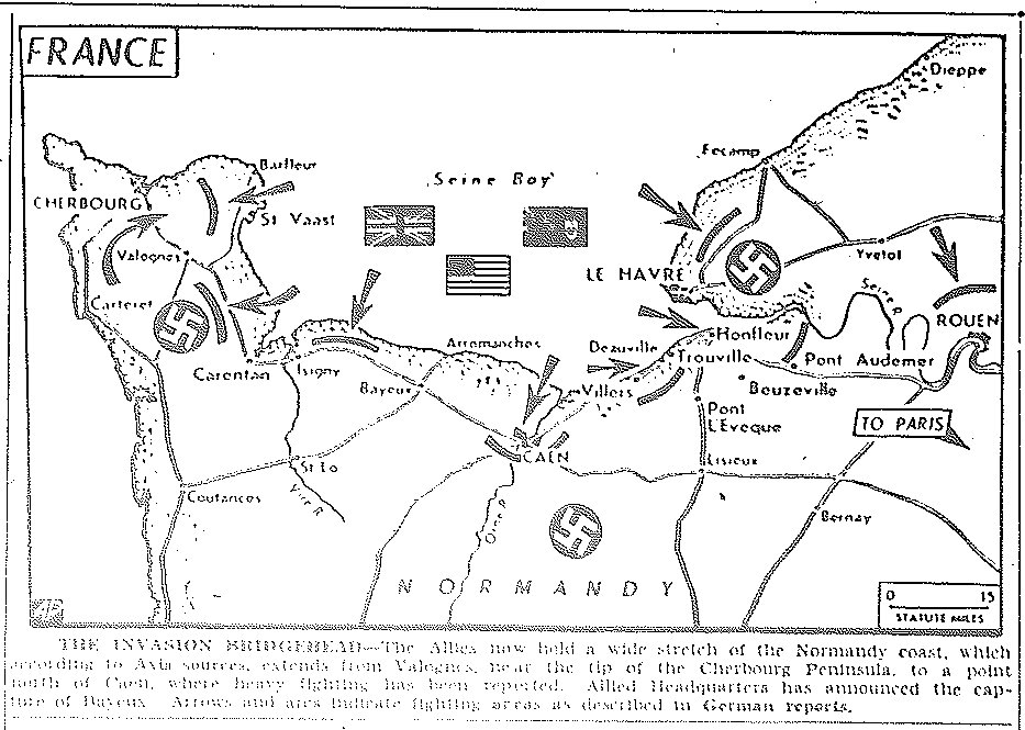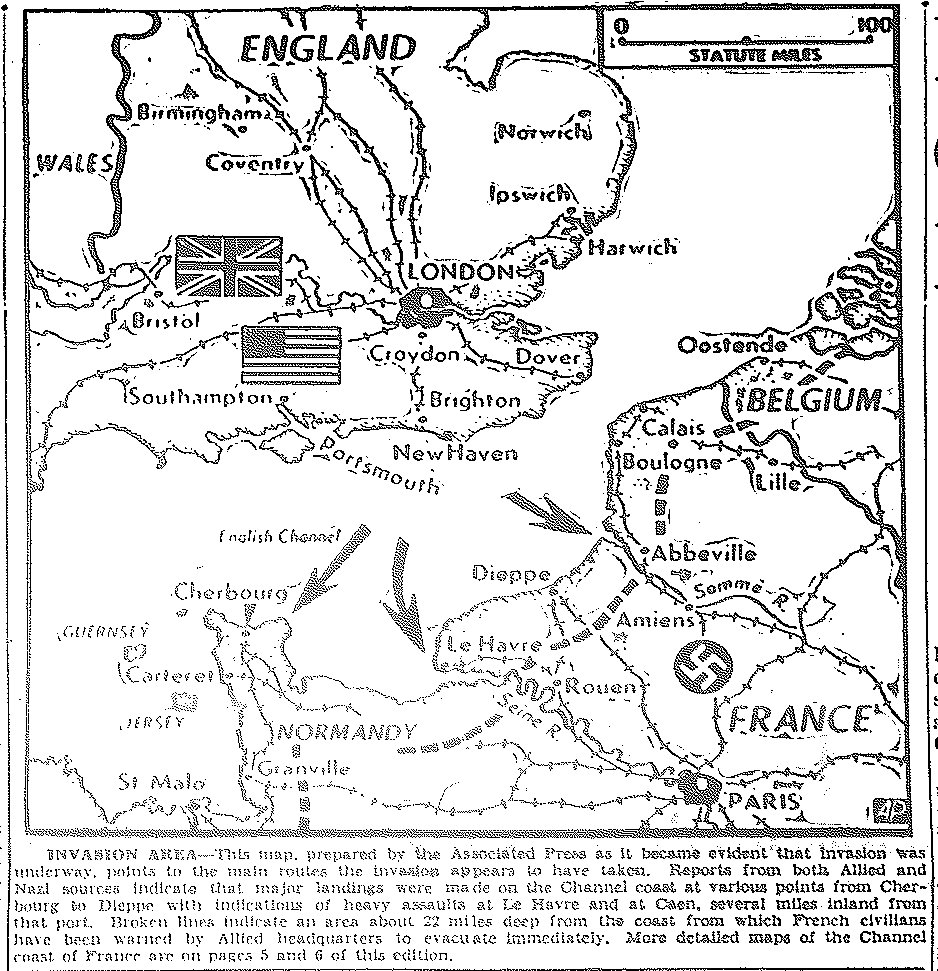 Map Three of D-Day Invasion of Normandy Coast, alternate caption, published June 6, 1944