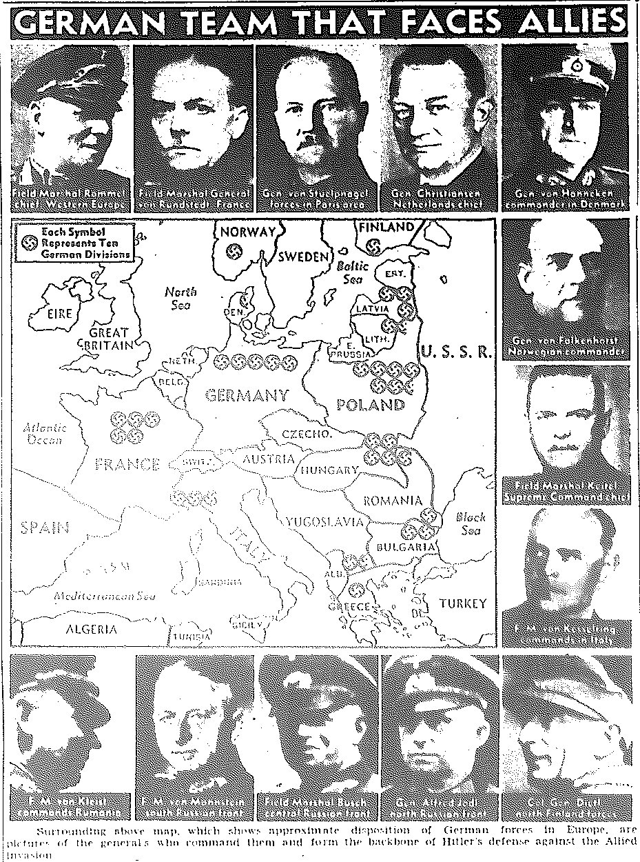 Map of Deployment of German Troops and Commanders, published May 6, 1944