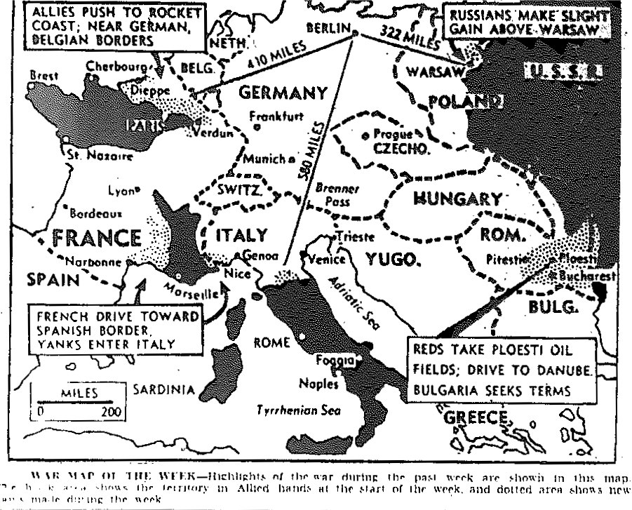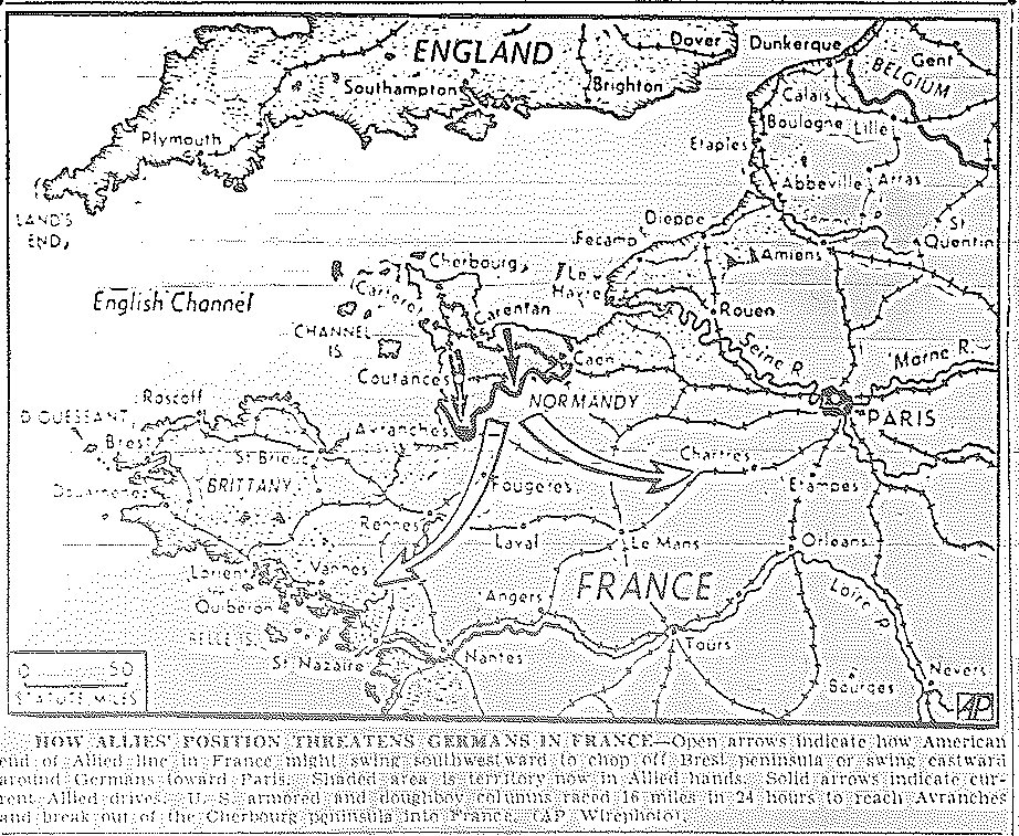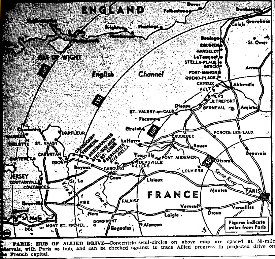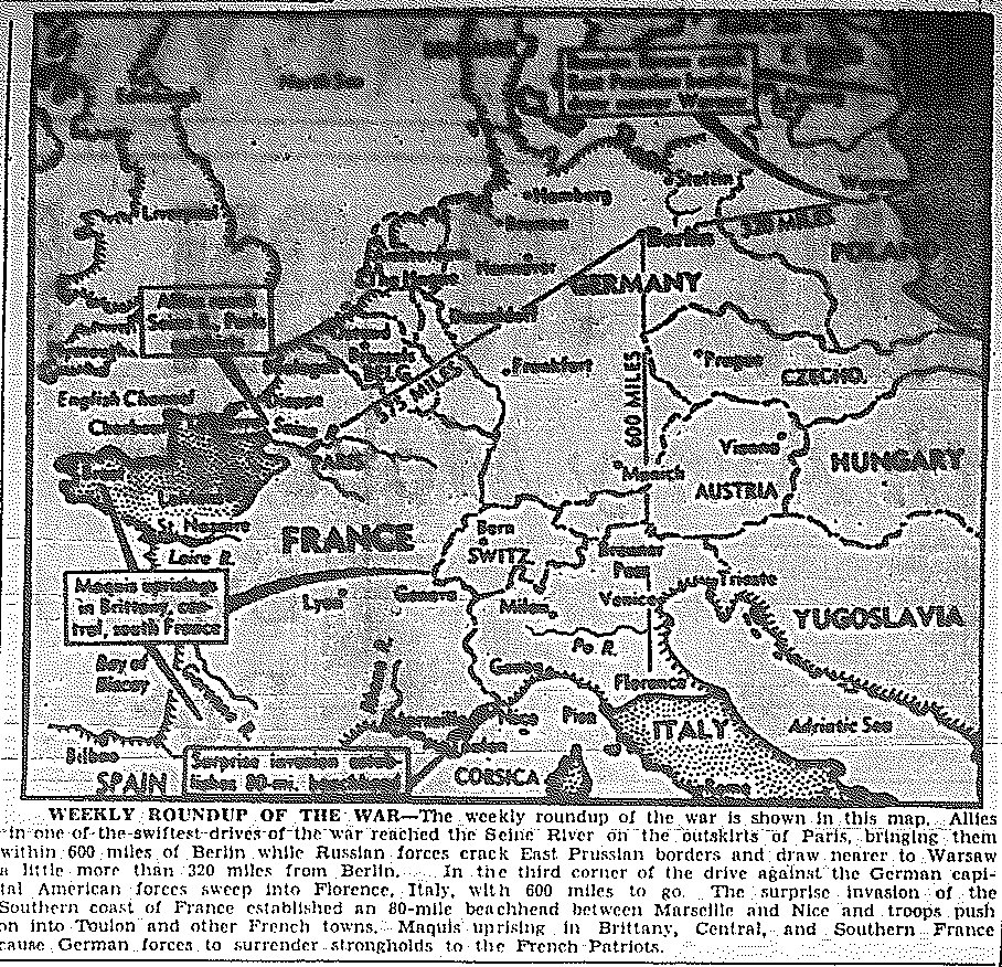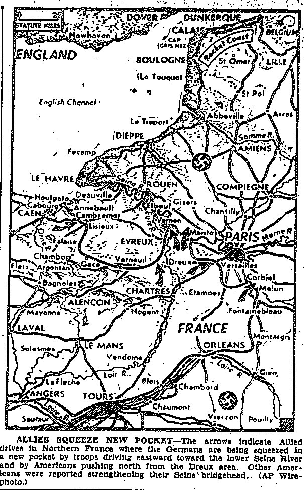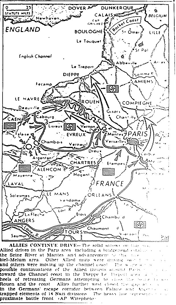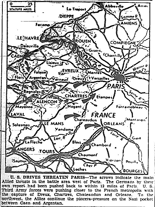 Map of Allied Drives Toward Paris, published August 22, 1944