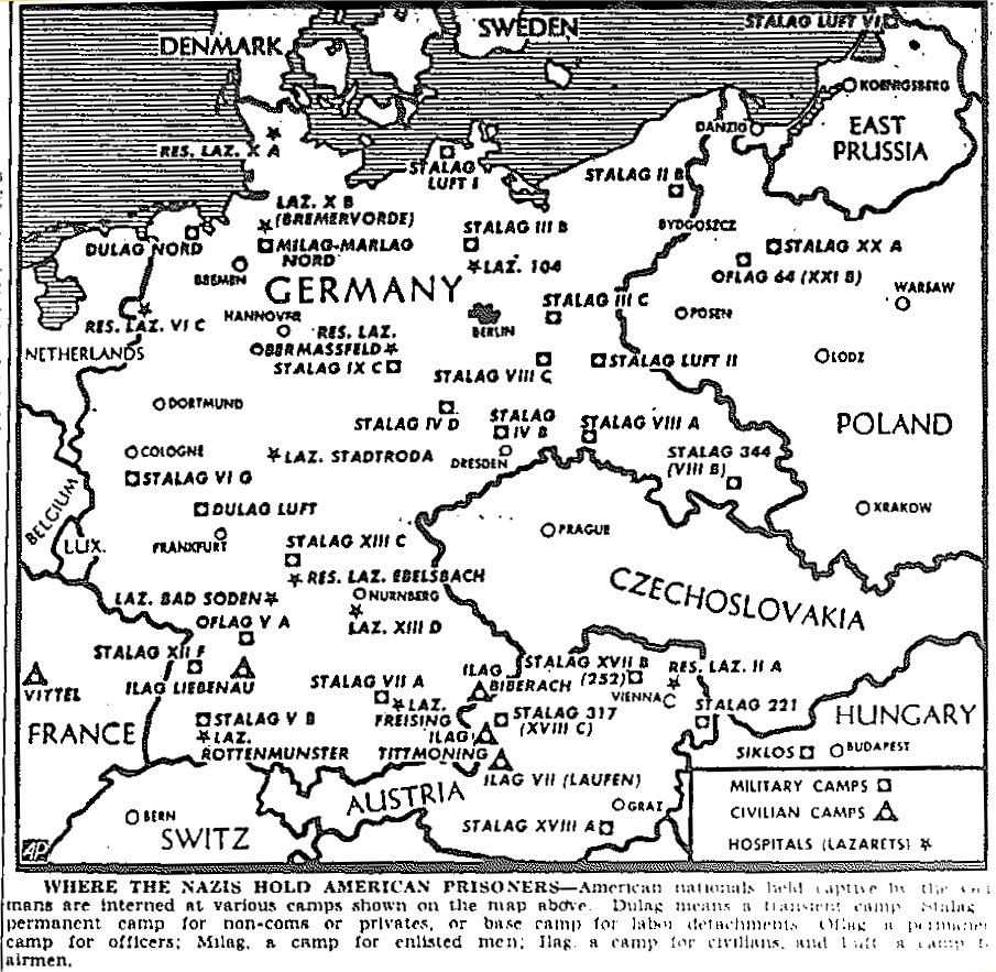 Map of Nazi Prisoner-of-War Camps, published August 16, 1944