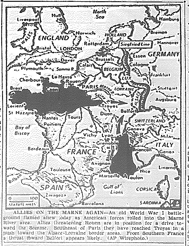 Map of Allied Move into the Marne Area, published August 28, 1944