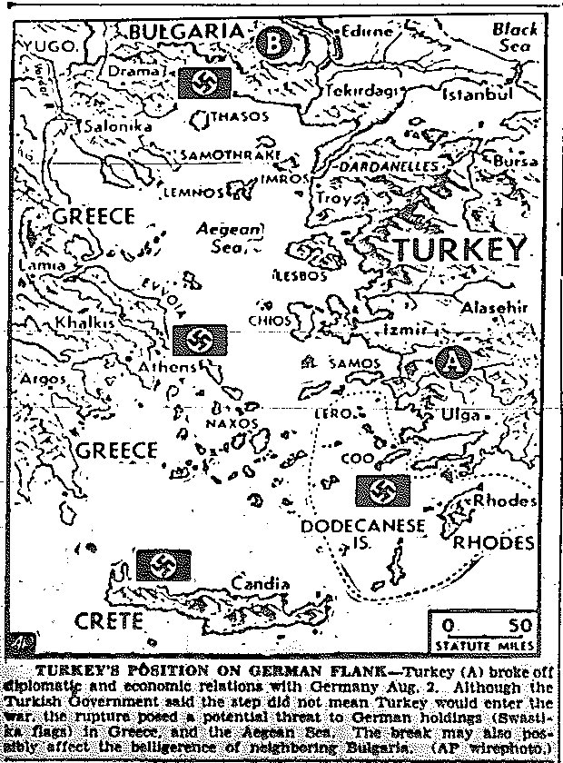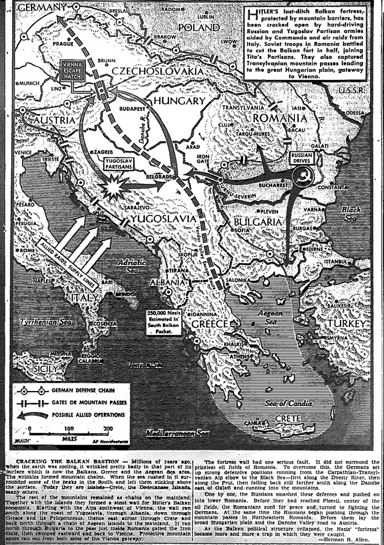 Map of Allied Thrust into Balkans to Trap 50,000 Germans, published September 15, 1944