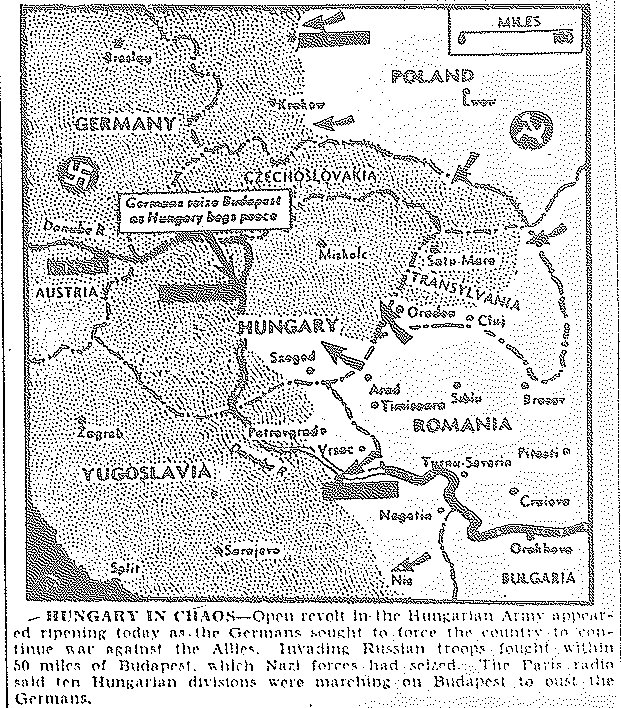 Map of Russian Advance on Hungary, Internal Revolt against Germany, published October 17, 1944