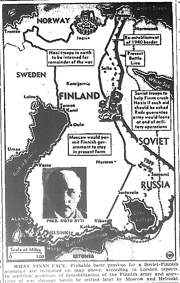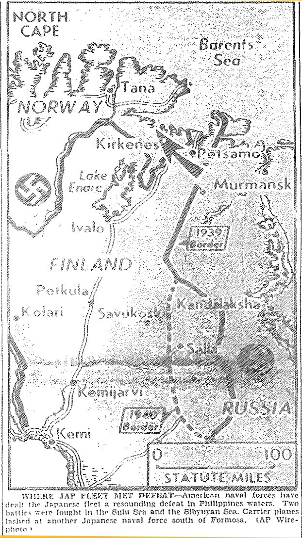 Map of Russian Advance on Norway, (with incorrect caption), published October 26, 1944