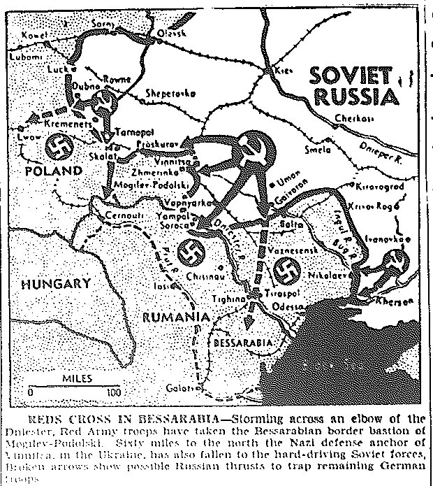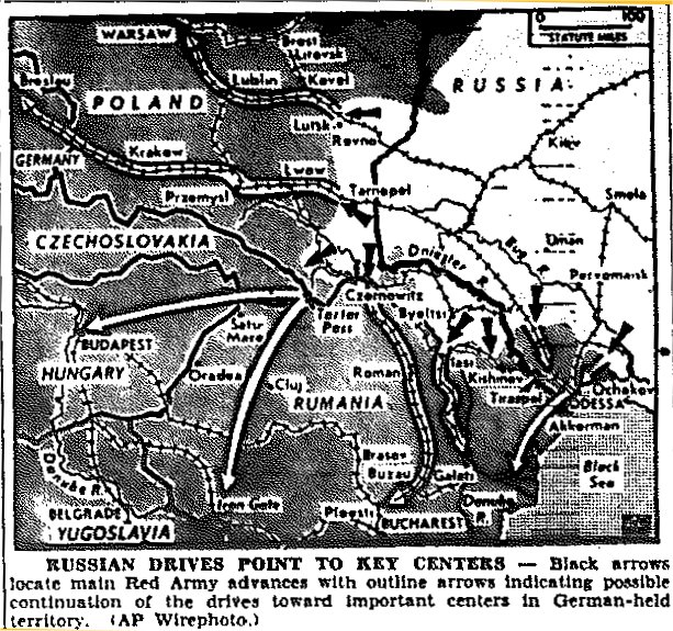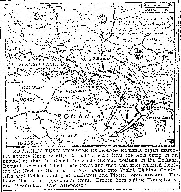 Map of History of Rumania, Path of Russian Army into Rumania, published August 26, 1944