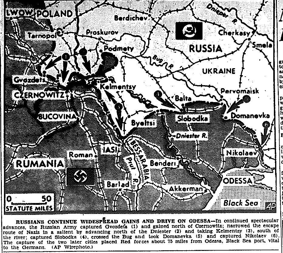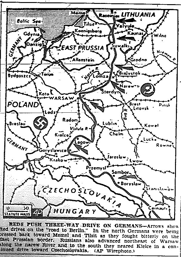 Map of Russian Drive into East Prussia, published August 3, 1944