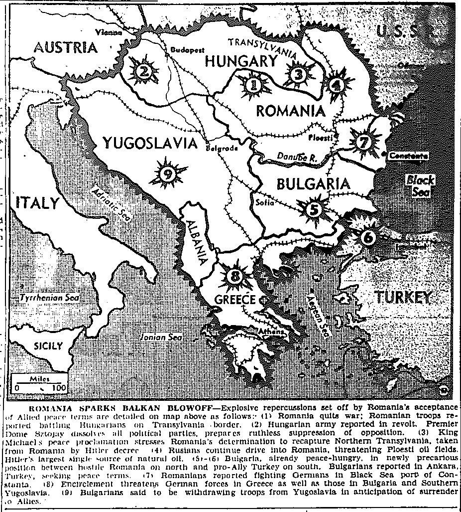 Map of Rumania and Balkan Revolt against Germany, published August 29, 1944