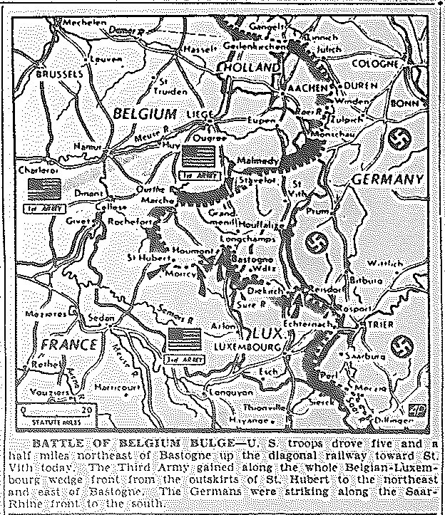 Map of Battle of the Bulge in Belgium, Drive Northeast of Bastogne toward St. Vith,