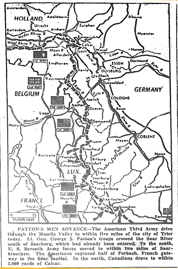 Map of Western Front, Third Army to Trier, Crossing Saar south of Saarburg,