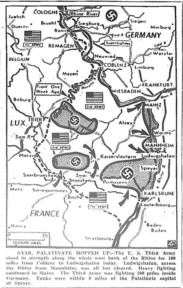 from Coblenz to Ludwigshafen, fighting in Mainz, published March 22, 1945