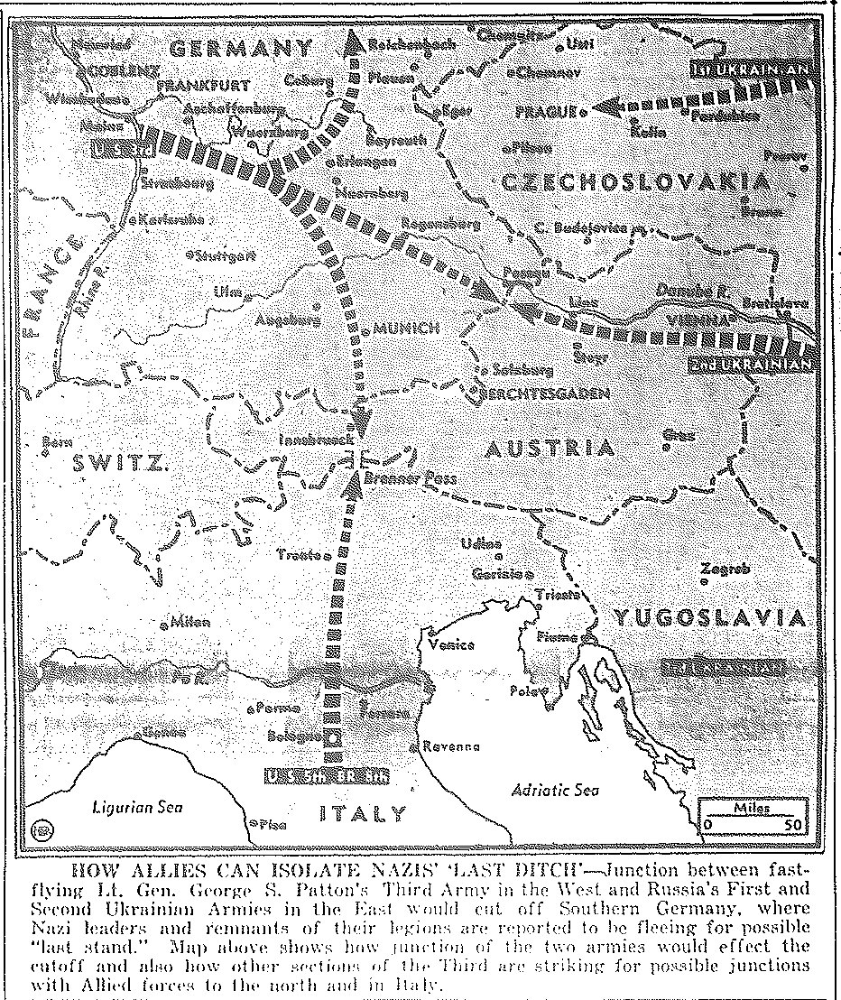 Dessau, Chemnitz, Nuernburg under assault, push to join Third and Soviet Armies, published April 20, 1945