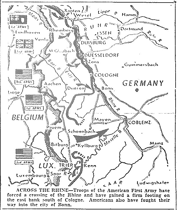 fighting into Koenigswinter, within 3 miles of open lane to Ruhr, published March 16, 1945