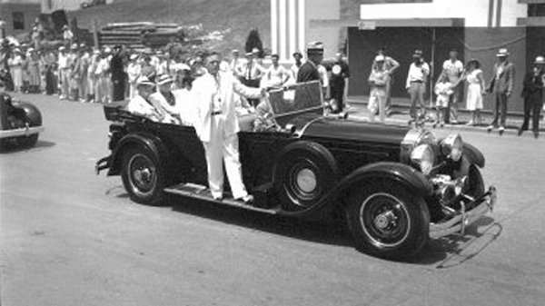 While about it, it is interesting to note that among FDR's many travels was a trip to Texas for the centennial of that state, June 12, 1936. The President and the First Lady arrived by train at Union Station, at the railroad gantlet there, next to George Bannerman Dealey Plaza, a WPA project recently opened in 1935, named for the publisher of the Dallas Morning News whose offices overlooked that Plaza. From there they proceeded by Lincoln down Main Street to the Cotton Bowl where the President gave an address, broadcast nationally, to an enthusiastic crowd at the inauguration of the annual State Fair there. Afterward, he attended a ceremony at Oak Lawn Park, for the dedication of a statue to Robert E. Lee, subsequently renamed Lee Park. (The President also, somewhere along the line, flipped a switch which set off a dynamite charge in Austin to break ground for the new Main Building there, the same building in fact from which Cash would deliver his June 2, 1941 commencement address.)